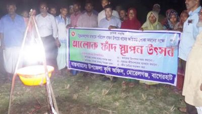 এস.এম. সাইফুল ইসলাম কবির, বাগেরহাট:উদ্ধুদ্ধকরণের মাধ্যমে পরিবেশ বান্ধব উপায়ে ধানের ক্ষতিকারক পোকা দমনের লক্ষ্যে বাগেরহাটের মোরেলগঞ্জে বুধবার রাতে অনুষ্ঠিত হয়েছে আলোক ফাঁদ স্থাপন উৎসব। সারা দেশে একযোগে পালিত হয়েছে