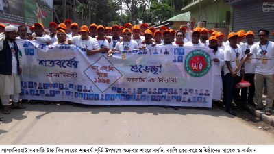 হাসান মাহমুদ লালমনিরহাট প্রতিনিধি ঃ বর্ণাঢ্য আয়োজনের মধ্য দিয়ে লালমনিরহাট মডেল সরকারি উচ্চ বিদ্যালয় প্রতিষ্ঠার শতবর্ষ পালিত হয়েছে। শতবর্ষ উদযাপন উপলক্ষে শুক্রবার সকালে বিদ্যালয় প্রাঙ্গণ থেকে প্রতিষ্ঠানটির বর্তমান ও
