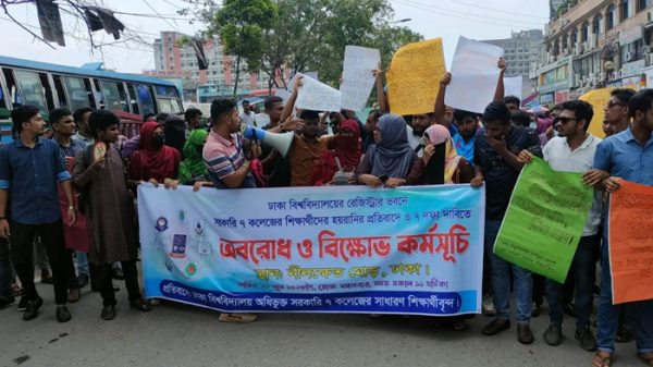 ঢাকা বিশ্ববিদ্যালয়ের অধিভুক্ত রাজধানীর সাত কলেজের শিক্ষার্থীরা দাবিতে নীলক্ষেত মোড় অবরোধ করেছেন। মঙ্গলবার (২০ জুন) দুপুর পৌনে ১২টার দিকে নীলক্ষেত অবরোধ করে বিক্ষোভ কর্মসূচি শুরু করেন তারা। শিক্ষার্থীদের অবরোধের