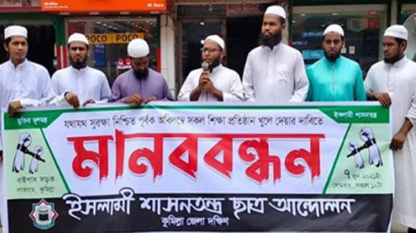 লাকসামে ইসলামী শাসনতন্ত্র ছাত্র আন্দোলন কুমিল্লা জেলা দক্ষিণ শাখা স্বাস্থ্যবিধি মেনে এবং শারীরিক দূরত্ব নিশ্চিত করে সব শিক্ষাপ্রতিষ্ঠান খোলার দাবিতে মানববন্ধন করেছে। কেন্দ্রীয় কর্মসূচির অংশ হিসেবে সোমবার (৭ জুন) এই