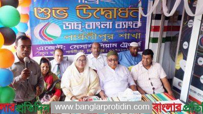 আব্দুল্লাহ আল মামুন, পার্বতীপুর (দিনাজপুর) প্রতিনিধি ঃ দিনাজপুরের পার্বতীপুরে ডাচ্-বাংলা ব্যাংক’র এজেন্ট ব্যাংকিং এর পার্বতীপুর শাখার ফিতা কেটার মধ্যদিয়ে শুভ উদ্বোধন করা হয়। ১৫ মে সোমবার সকালে নতুন বাজার